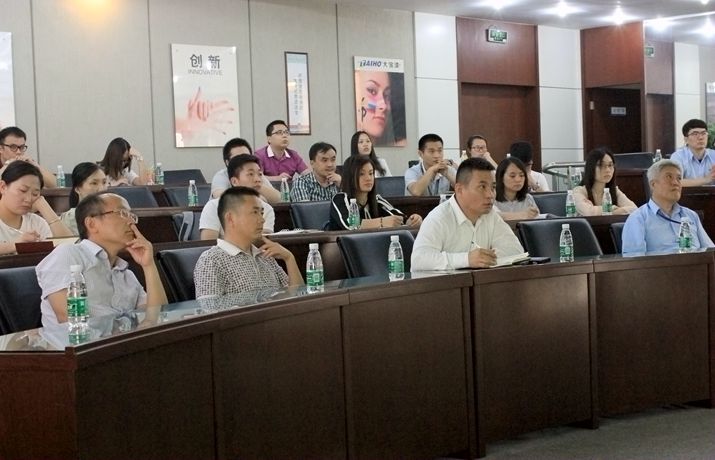會上,企劃部蔣小梅先向來賓介紹了大寶化工,隨后培訓學校老師龔運德向索菲亞家居呂總及在座的人著重介紹了大寶PU漆,大寶漆素來的好口碑配上精彩的介紹贏來索菲亞家居人的熱烈掌聲。陳春華總經理向參訪人員表示熱烈歡迎,并表示大寶漆誠切希望能與索菲亞有進一步的合作交流。索菲亞家居呂總最后以一個小故事來說明他對大寶漆綠色環保品質的肯定,表示索菲亞家居有跟大寶漆合作的意向,在發展綠色家具產業鏈中共贏共進步。