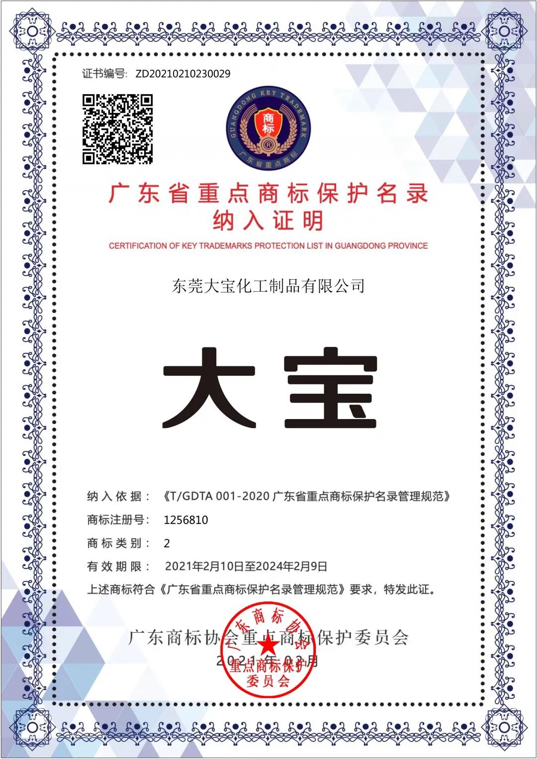 經(jīng)過近一年的嚴格審查和篩選,近日,大寶漆商標被納入廣東省重點商標保護名錄。據(jù)悉本次評選涵蓋全國各大知名品牌企業(yè),最終有790多件商標納入本次保護名錄中!新征程喜訊加磅,企業(yè)實力及品牌價值再獲權(quán)威認證!