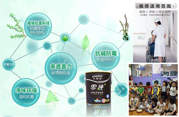 大寶始終將消費(fèi)者的健康放在首位,將【植物抗菌技術(shù)】導(dǎo)入涂料中,對配方技術(shù)進(jìn)行創(chuàng)新升級,并成功研發(fā)零純+植物抗菌墻面漆。