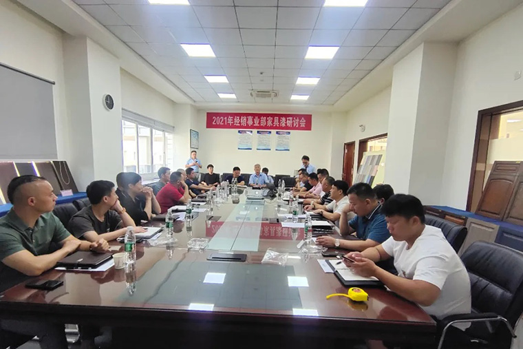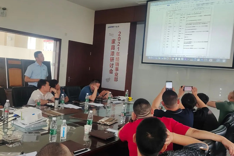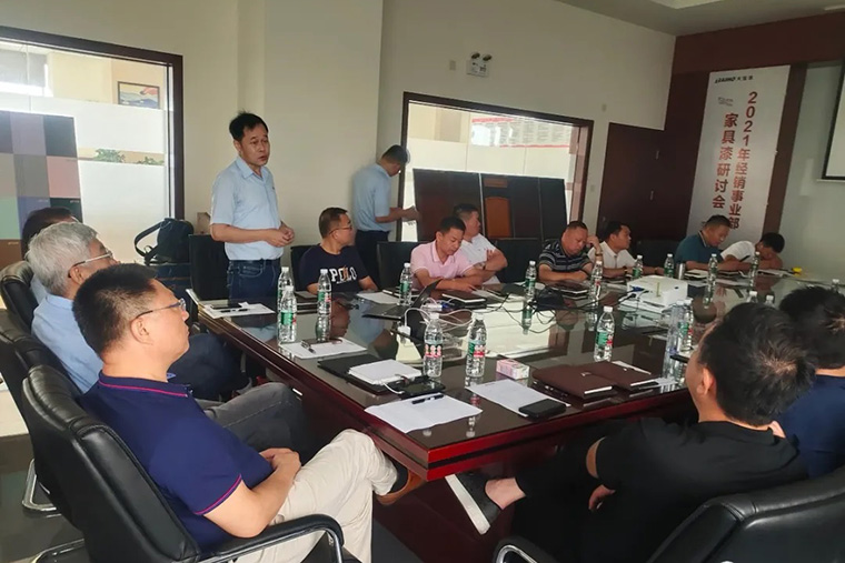 而后,經銷事業(yè)部家具漆執(zhí)行經理劉國勇帶來了以“破局 共生”為主題的工作報告。劉執(zhí)行經理首先對家具行業(yè)從國際環(huán)境到國內環(huán)境到市場環(huán)境現(xiàn)狀進行了深入的分析,從公司在國內市場布局、2021年上半年業(yè)績達成情況分析、客戶定位、產品品項突破、特色化產品、市場流通型產品、服務支持等方面進行了全面的講解,通過“破局 共生”兩部分希望公司與經銷商一起并肩作戰(zhàn),共迎困難。