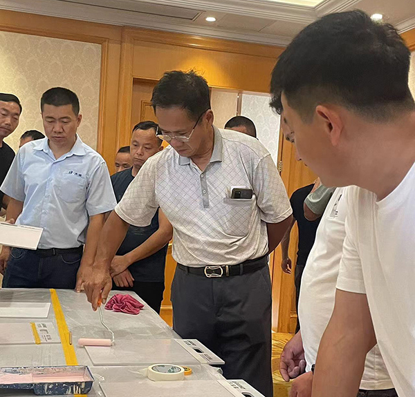 技術部夏秀麗詳細介紹主推產品,包括大寶零純系列、荷蘭高樂伯體系、輔材、藝術涂料等產品性能和優勢,增強產品推廣知識。