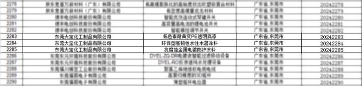 近日,廣東省高新技術(shù)企業(yè)協(xié)會(huì)正式公布了2024年廣東省名優(yōu)高新技術(shù)產(chǎn)品名單。大寶漆的三款產(chǎn)品——低色素耐黃變PE透明底漆、環(huán)保型高韌性水性木器涂料和抗腐蝕金屬電鍍防護(hù)涂料成功上榜,彰顯了企業(yè)在科技創(chuàng)新和產(chǎn)品質(zhì)量方面的卓越實(shí)力。