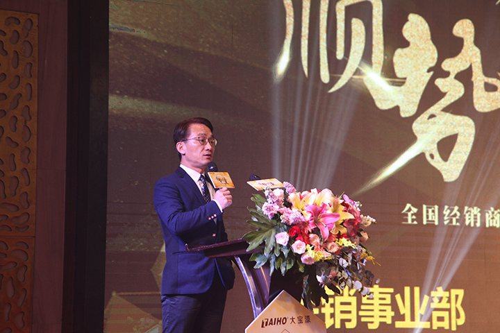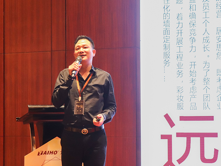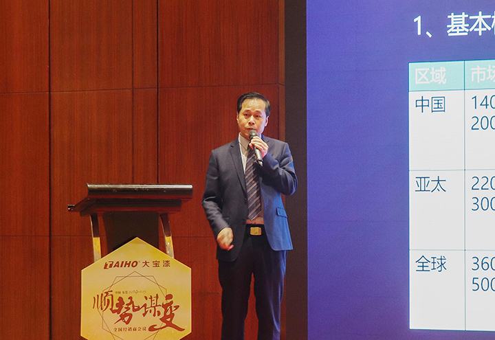隨后,家裝事業部經理黃文敏作家裝漆總結報告。他通過成功經營案例、大寶漆2019年市場布局為經銷商加油打氣。他指出,公司將通過內部整合、外部資源運用,和經銷商協同謀贏,再創佳績。