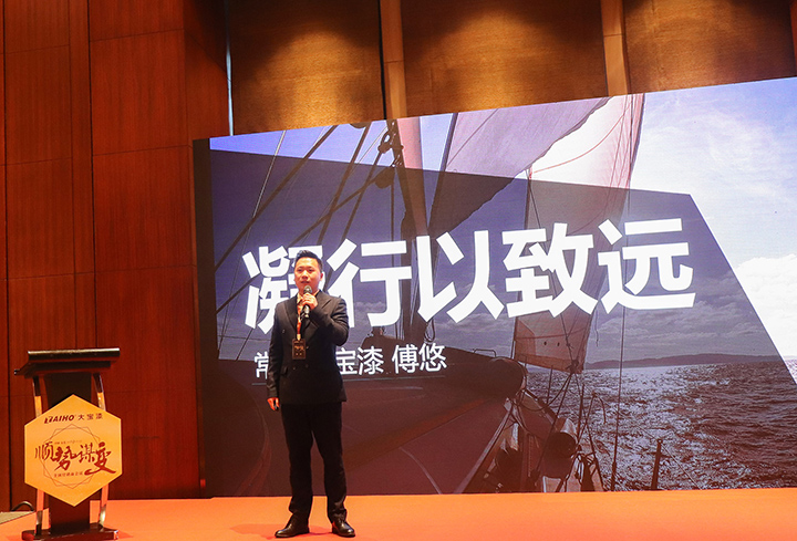 只有好的思路,才有好的出路。會上,大寶國際董事長陳賀生作重要講話。他指出,大寶漆乘著改革開放的春風發展壯大,從小到大,由弱變強,走出了一條自主研發、綠色環保的發展之路。如今,在謀變革新的新時代,我們要以專業共創新機,即產品專業、服務專業、渠道專業,在產品、服務、渠道等全方位積極布局,推進發展。