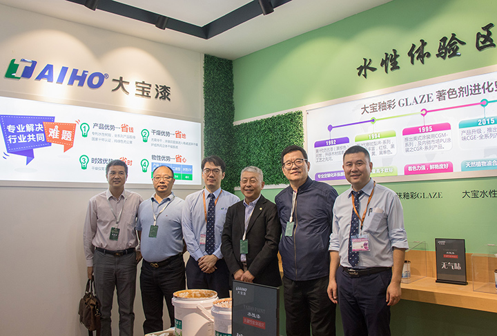 此外,開(kāi)展當(dāng)天,中國(guó)涂料工業(yè)協(xié)會(huì)秘書長(zhǎng)閆永江、中國(guó)水性木器涂料產(chǎn)業(yè)聯(lián)盟主席楊獻(xiàn)等領(lǐng)導(dǎo)一行人蒞臨參觀了大寶漆展位,并對(duì)大寶漆各展示模塊進(jìn)行了詳細(xì)了解。