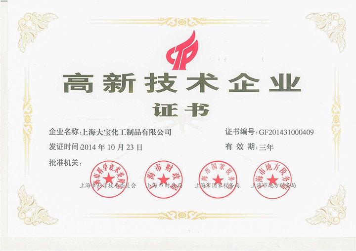 上海大寶在如此外在壓力下,捷報(bào)不斷。為了滿足大寶漆“精益求精,專業(yè)服務(wù),致力創(chuàng)新,持續(xù)改善”的宗旨,上海大寶于2011年首次申請(qǐng)并通過(guò)了“上海市高新技術(shù)企業(yè)”,并于2017年10月成為上海市第一批公示的高新技術(shù)企業(yè),這是上海大寶繼2011年被認(rèn)定為高新技術(shù)企業(yè)后第三次順利通過(guò)認(rèn)定;2017年11月完成區(qū)企業(yè)技術(shù)中心復(fù)核工作;此外,也順利獲得“十環(huán)認(rèn)證”證書(shū)。經(jīng)過(guò)上海大寶同仁的共同努力,在如此嚴(yán)苛的大環(huán)境條件下,上海大寶在2017年才能交出如此亮麗的成績(jī)。