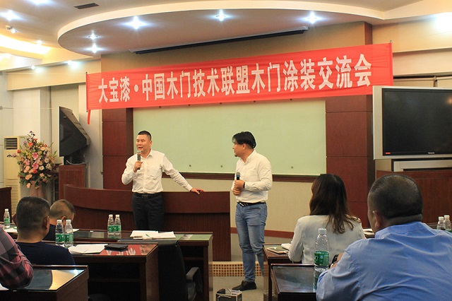 本次交流會的最大特點,不僅有大寶化工工作人員分享水性涂料的涂裝工藝,更有木門聯盟成員根據自己企業“油改水”遇到的問題在現場提問,共同探討解決方案。聯盟成員在會上表示,今日來訪大寶化工,不僅看到了大寶優美的廠區環境和先進的技術設備,還希望大寶漆能夠協助木門企業打開水性涂裝的大門,少走彎路,切實解決企業環保涂裝的難題。