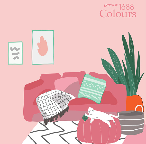 正值換季季節,不妨嘗試看看以大寶設彩家推薦2023年度關鍵色/R7020-85P桃紅為主色調的系列搭配,將這些繽紛顏色運用于居家環境中吧!