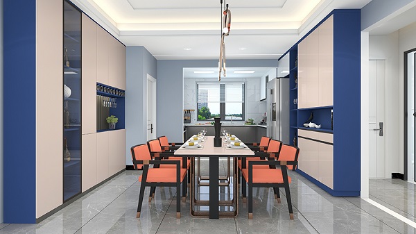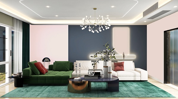 深藍(lán)或?qū)毸{(lán)與藕粉色對比搭配,展現(xiàn)出視覺沖擊力。藕粉色的溫暖柔和能有效中和藍(lán)色的冷調(diào),瞬間讓家居配色與眾不同,凸顯獨(dú)特的個(gè)性化風(fēng)格,為空間注入現(xiàn)代感與藝術(shù)氛圍,讓人眼前一亮。