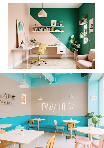 同色系搭配:與淺粉、蜜桃白組合,清透而浪漫,尤其適合臥室或兒童房,營造安眠與愜意的氛圍。
